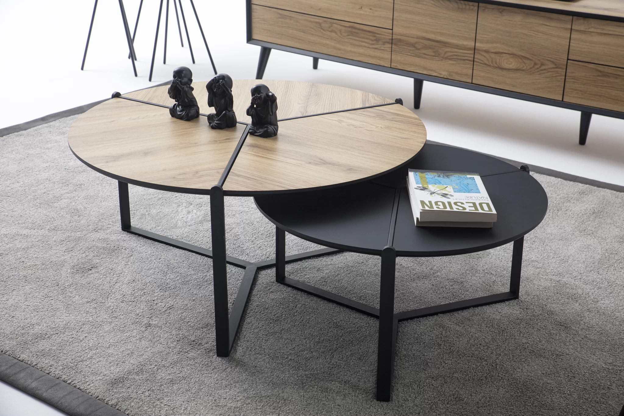 Izradjeno u kombinaciji metalnih nogica i furniranih ploča.
