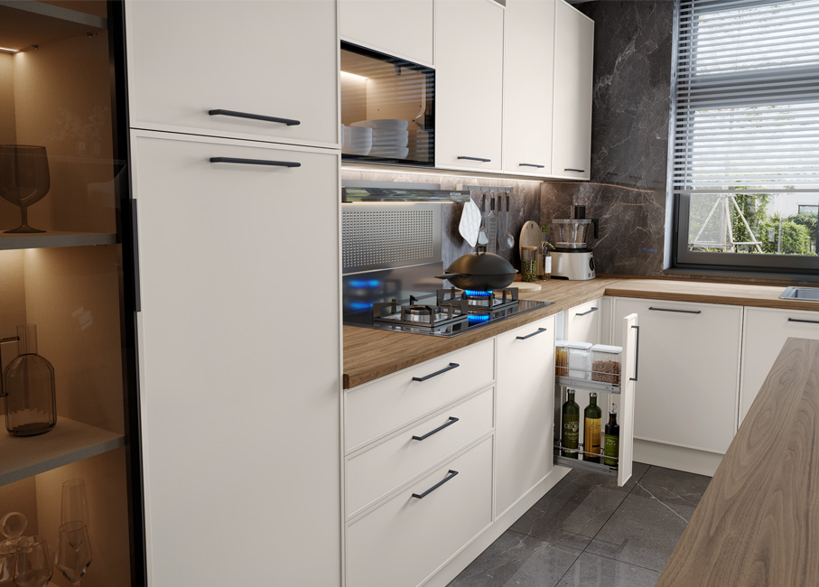 - istaknite bočne strane kuhinje ugradnjom dodatnih panela koji su deo dodatne opreme