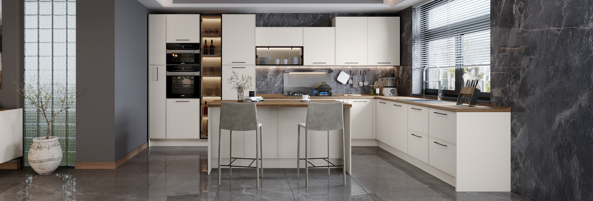 - front sa profilisanim MDF ramom lakiran UV lakom u boji kašmira sa mat efektom